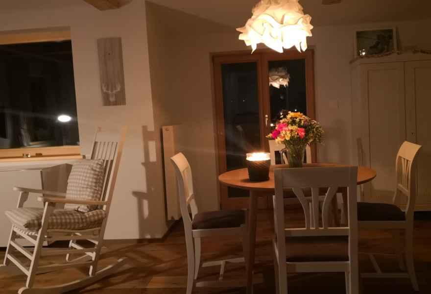Wer die Berge liebt, liebt die Natur, liebt die vielen verschiedenen Blumen. Die mit viele zum Detail ausgestattete Wohnung verfügt ebenso wie die Wohnung „Gipfelstürmer“ über ein separates Schlafzimmer und ein komfortables Schlafsofa, welches im Wohn- und Essbereich steht. Auch im „Edelweiss“ gilt, dass alles komplett ausgestattet ist. WLAN ist selbstverständlich, das TV-Gerät ist mit Smart-TV ausgerüstet. Auch das „Edelweiss“ verfügt über einen kleinen Balkon. Das moderne Bad ist mit einer Dusche ausgestattet.